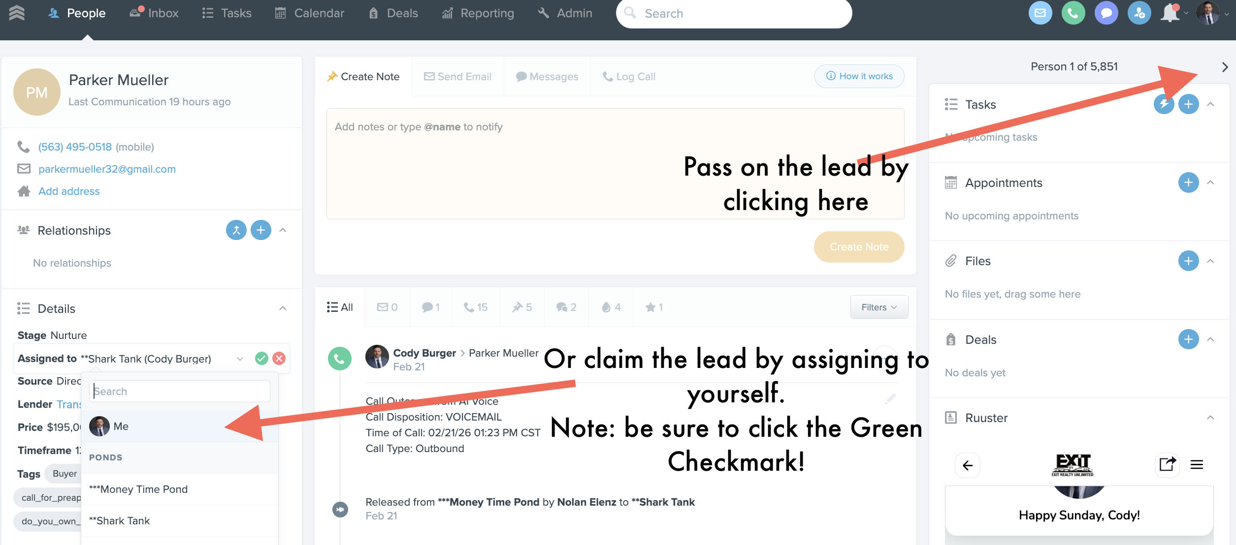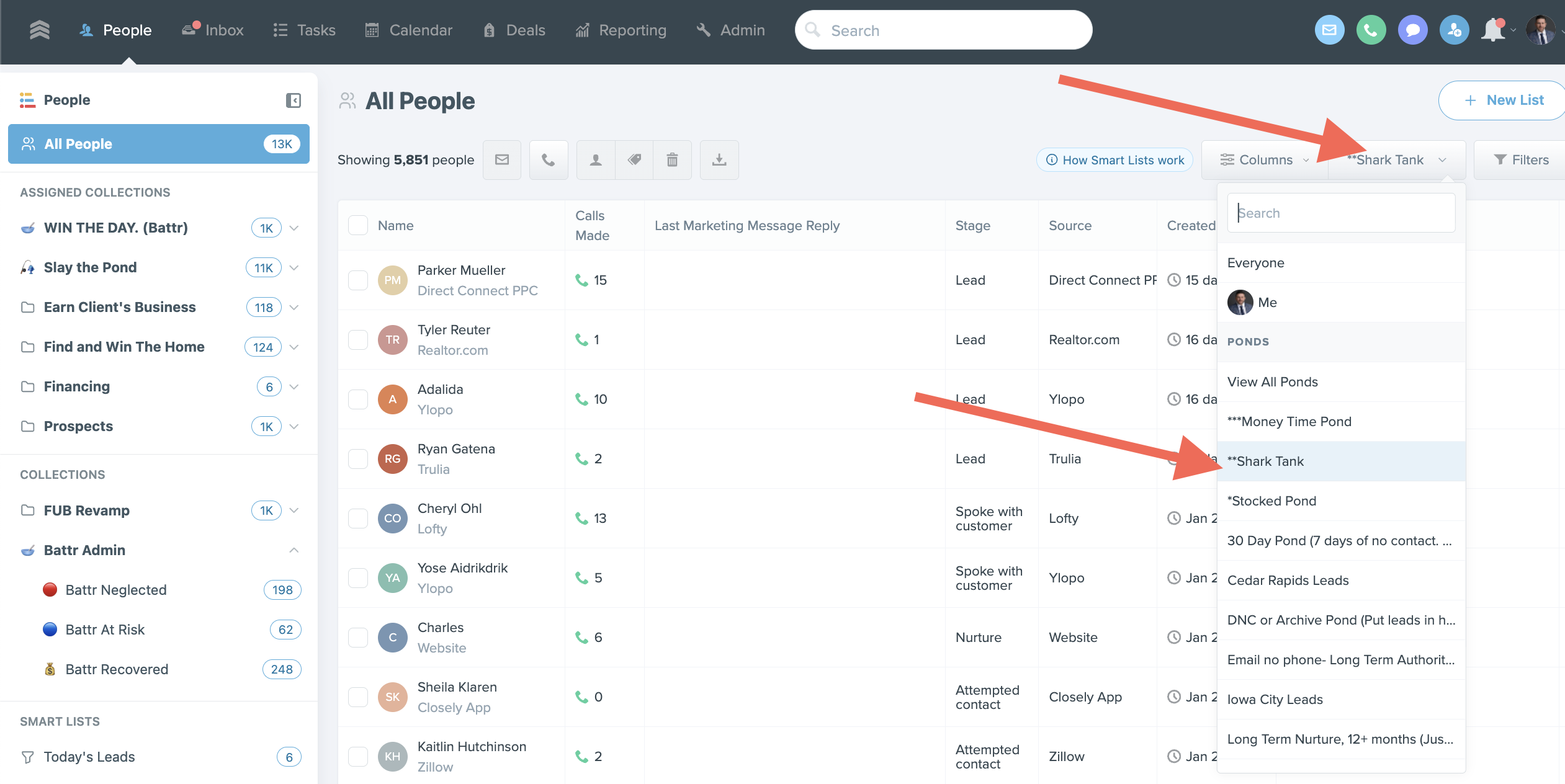 Login to FUB > Click on the Pond > Navigate to the Appropriate Pond